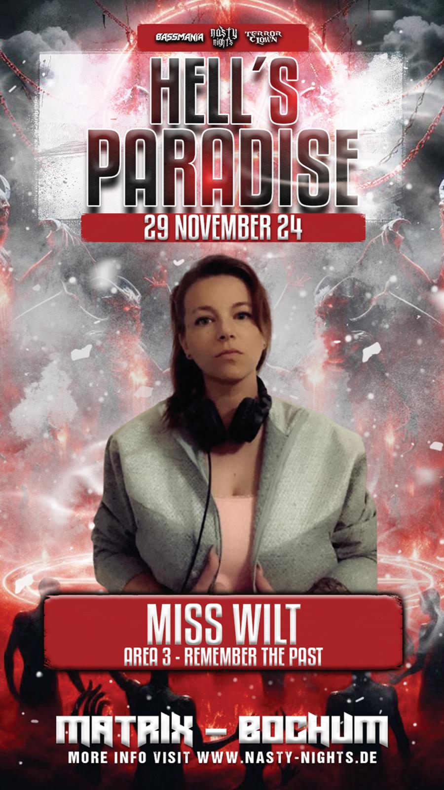 Stephanie Vanderwilt — bekannt als Miss Wilt — ist eine belgische DJ & Producerin, die seit 2008 die Hardcore- und Millennium-Szene aufmischt.